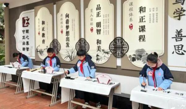 「校園是屬於孩子們的,讓他們自己寫校名,就會(huì)有一種歸屬感,也激起孩子們酷愛並傳承中華傳統(tǒng)文化的誌向,增強(qiáng)愛校愛國(guó)的情感。」關(guān)於請(qǐng)學(xué)生書寫校名,合肥市頤和佳苑小學(xué)教育集團(tuán)總校長(zhǎng)錢梅娟介紹說(shuō),此次書法現(xiàn)場(chǎng)展現(xiàn)活動(dòng)是合肥市頤和佳苑小學(xué)教育集團(tuán)多措並重推進(jìn)「雙減」政策落地收效的體現(xiàn),為學(xué)生們供給彼此切磋、展現(xiàn)自我的平臺(tái)。